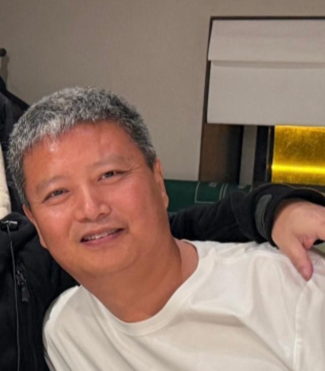 导演简川訸身穿白色T恤,如今53岁的他,看起来元气满满,一看就是个锻炼达人。