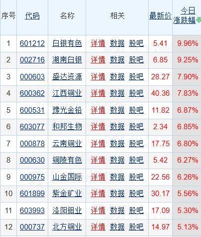 早盘,黄金概念板块表现活跃,截止发稿白银有色涨停,湖南白银涨超9%春安配资,盛达资源、江西铜业涨超7%,豫光金铅、合邦生物、云南铜业、铜陵有色、山金国际涨超6%,紫金矿业、洛阳钼业、北方铜业等涨超5%。